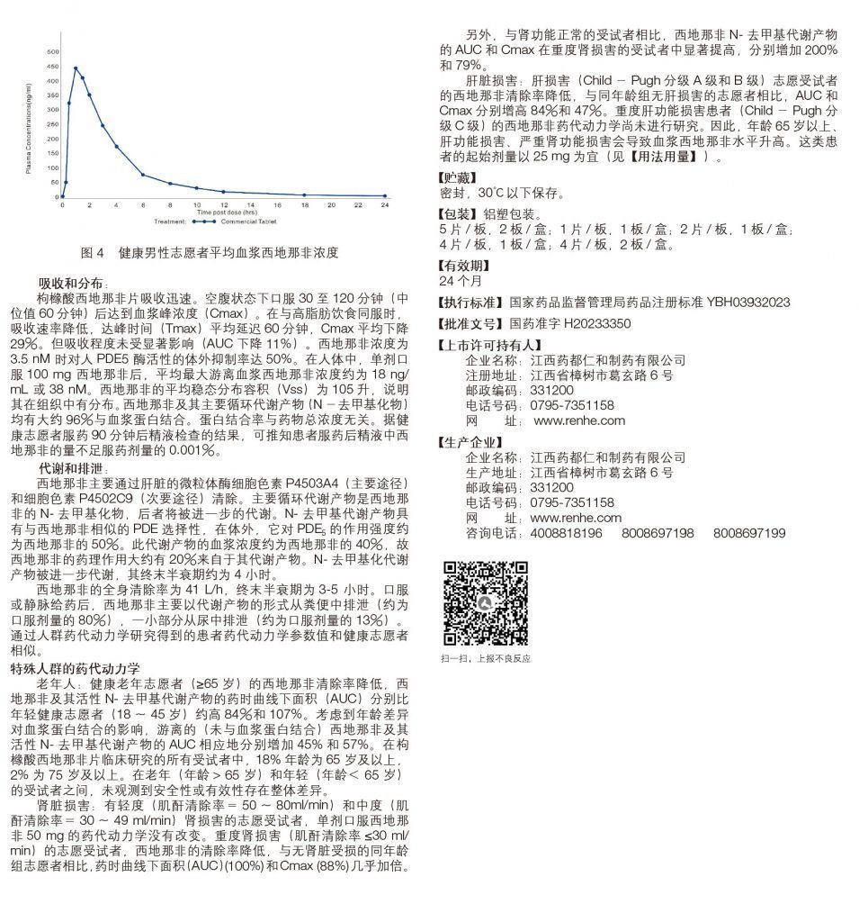 枸櫞酸西地那非片(50mg/片 *4片/板*1板/盒)